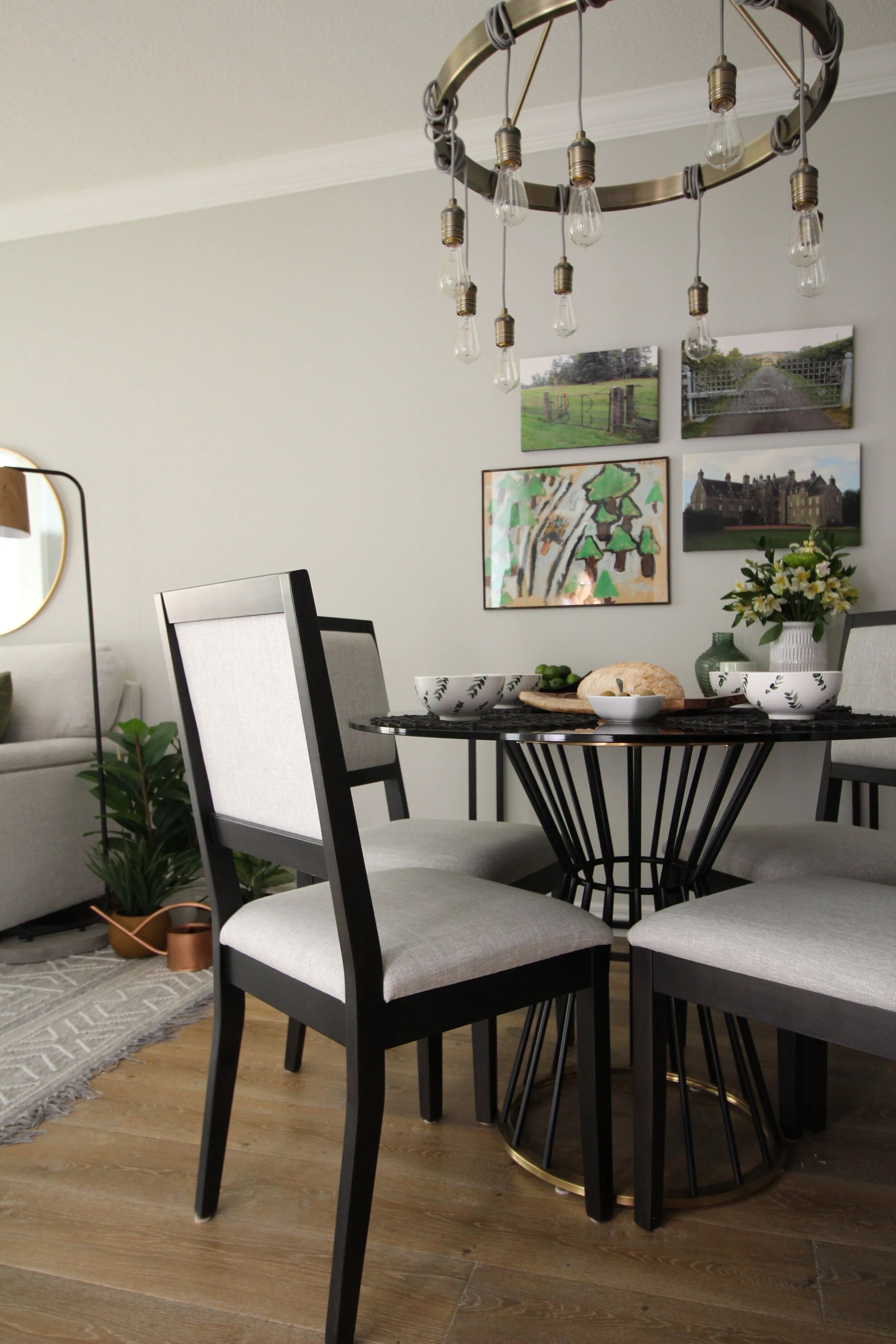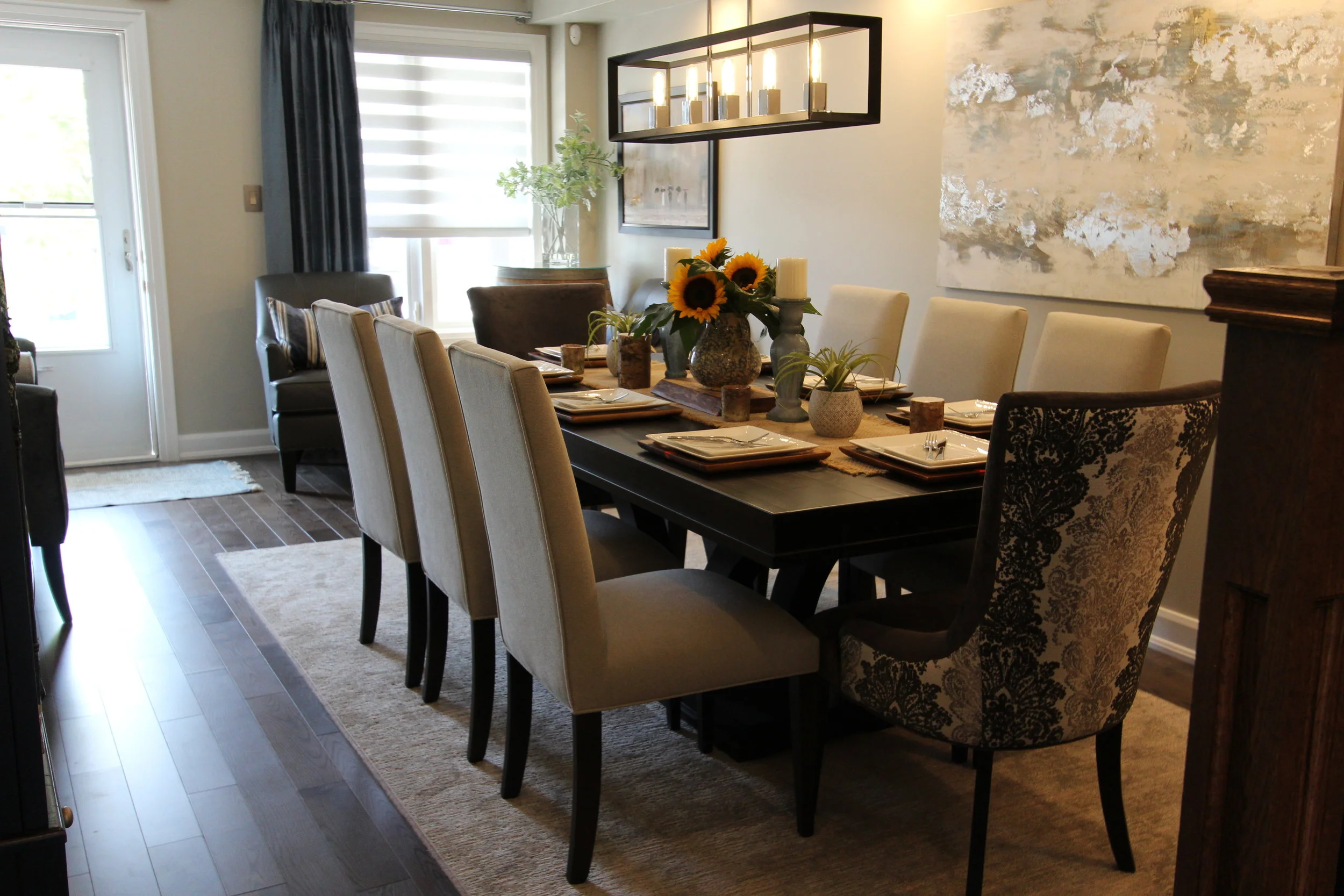 What was done. New vinyl flooring was installed throughout this Milton On, condo. Fresh coat of paint. New furniture, rugs, mirrors and accessories. Her buffet and hutch was professioanlly painted in modern, grey colour. All dressed up and no place to go…….(Covid project)